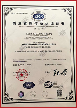 江蘇永星化工股份有限公司成立于2010年,位于江蘇省宿遷市宿豫區(qū)生態(tài)化工科技產業(yè)園揚子路6號,注冊資本3215.463萬元,占地105畝,分為南北兩個廠區(qū)。